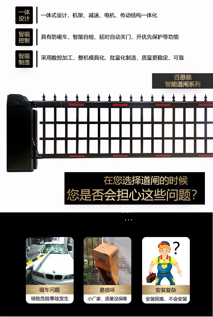 對(duì)于廣告道閘大家心里應(yīng)該都清楚是什么,在現(xiàn)在廣告道閘處于智能通道設(shè)備里面的香餑餑,搶手的很,各式各樣的廣告道閘都有,但真正的、會(huì)做廣告道閘的廠家卻沒(méi)有幾家?當(dāng)然我不是說(shuō)其他的都不會(huì)做,而是或多或少有這樣那樣的問(wèn)題存在。但我們百思德的廣告道閘,我可以很自信的說(shuō)是真心不錯(cuò),通過(guò)這么多年的摸爬滾打,對(duì)于廣告道閘的認(rèn)識(shí)有了新一步的提升,雖然不是最好的但朝著最好為目標(biāo)在努力奮斗著。